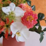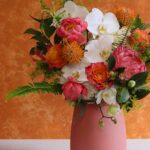 Mother’s Day celebrations with this refreshing citrus palette in orange, grapefruit and coral hues.  Vases (2 sizes) bouquet (1 size only)