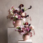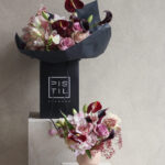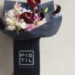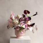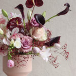 Bring in the sweetest taboo… Sweet, sensual and fragrant rose lilies, Freesia and blush cymbidium orchids shaded with black calla lilies and chocolate Anthiriums. Arrangements available in 2 sizes. Bouquet Available in 1 size.